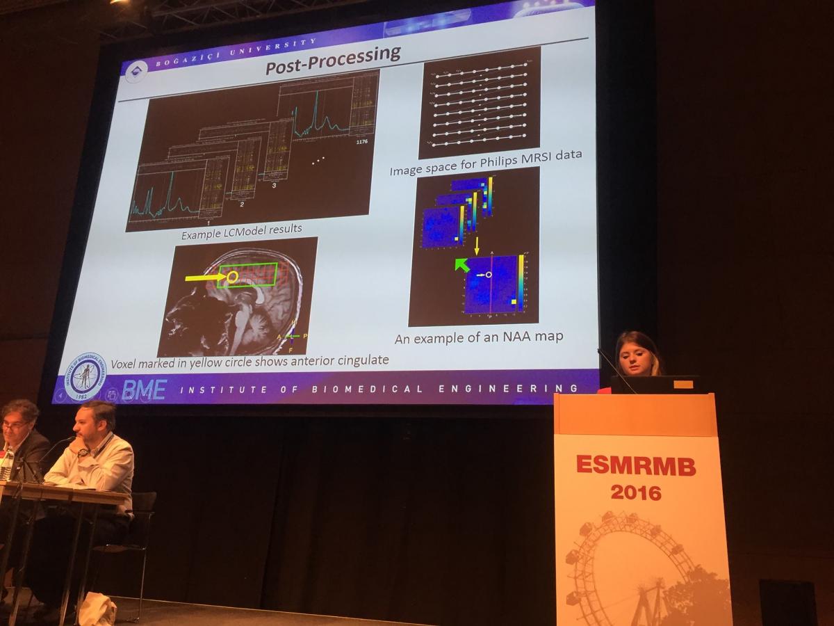 Dilek Betül Arslan and Sevim Cengiz presented their work on multimodality MR imaging of mild cognitive impairment in Parkinson's disease at ESMRMB 2016 held at Vienna, Austria on September 29th, 2016.